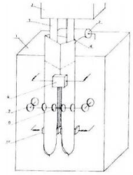 另一项现有技术,即对比文件2(CN2313854Y)公开了一种制袋充填封口包装机,如图3所示,其包括壳体1,壳体内装有传动构件和控制装置等部件,壳体上装有热封包装材料卷筒2和料箱3,壳体外面装有包装袋成形器4,连接料箱业通过成形器的二送料道5,纵向热封切断器6和底端热封切断器10,当纵向热封切断器6和底端热封切断器10合弄时,即进行纵向热封切割以及膜筒底端侧向热封和切割。当6和10张开时,牵引轮8即转动下拉复合膜,使复合膜经形成器4形成折合后下移,并同时进行罐装,接着开始下一个周期。这样,周而复始连续自动地完成双道包装两袋的过程。